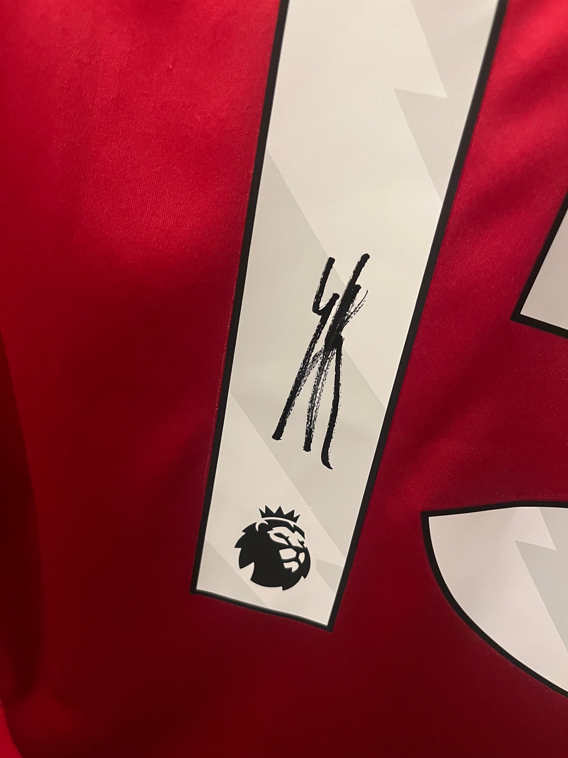 Drakten leveres med ektehetsbevis (COA) som garanterer at signaturen er 100 % autentisk og personlig signert av spilleren.✍️ Medfølger bildebevis ved salg her.