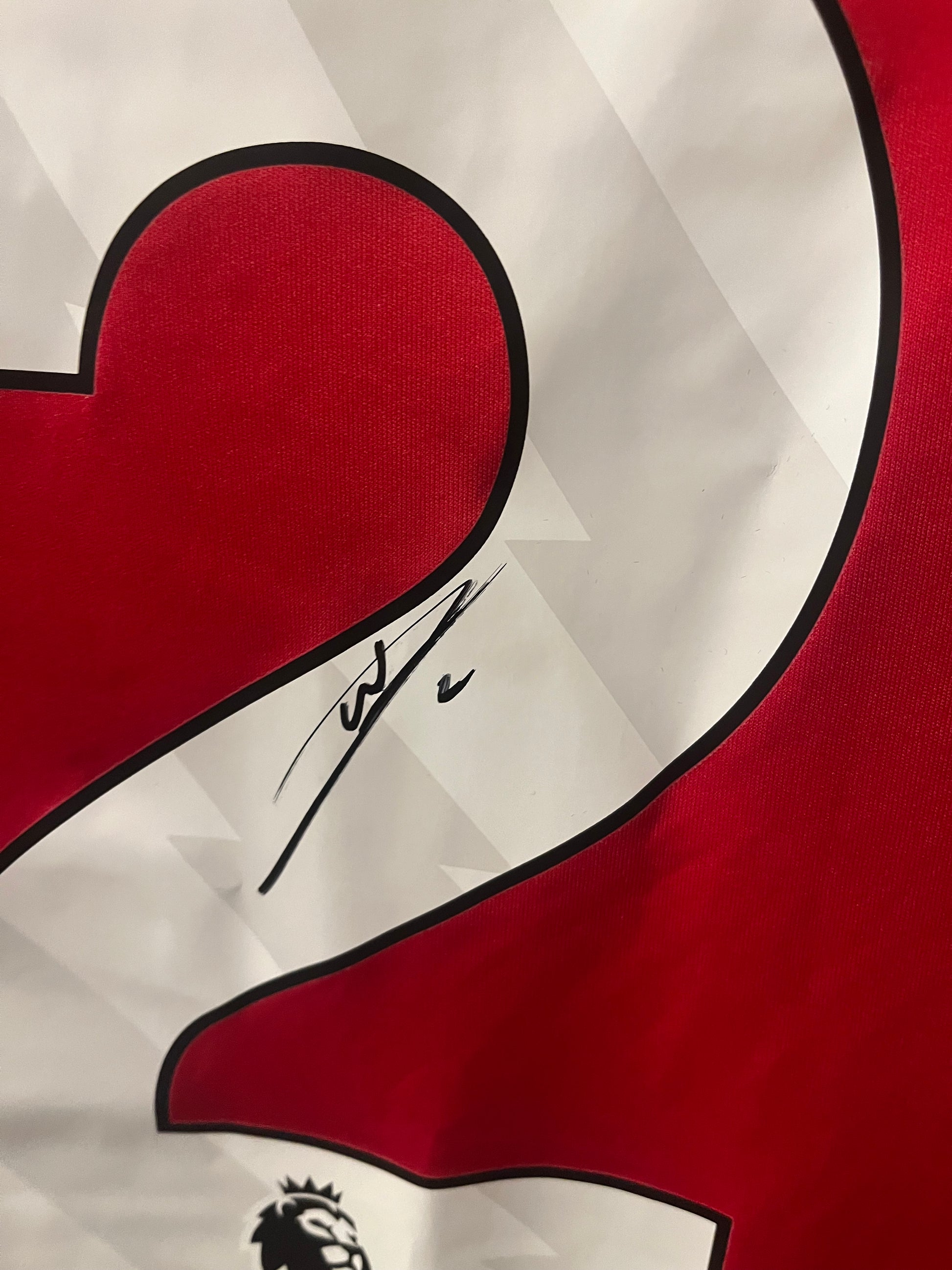 Drakten leveres med ektehetsbevis (COA) som garanterer at signaturen er 100 % autentisk og personlig signert av spilleren.✍️