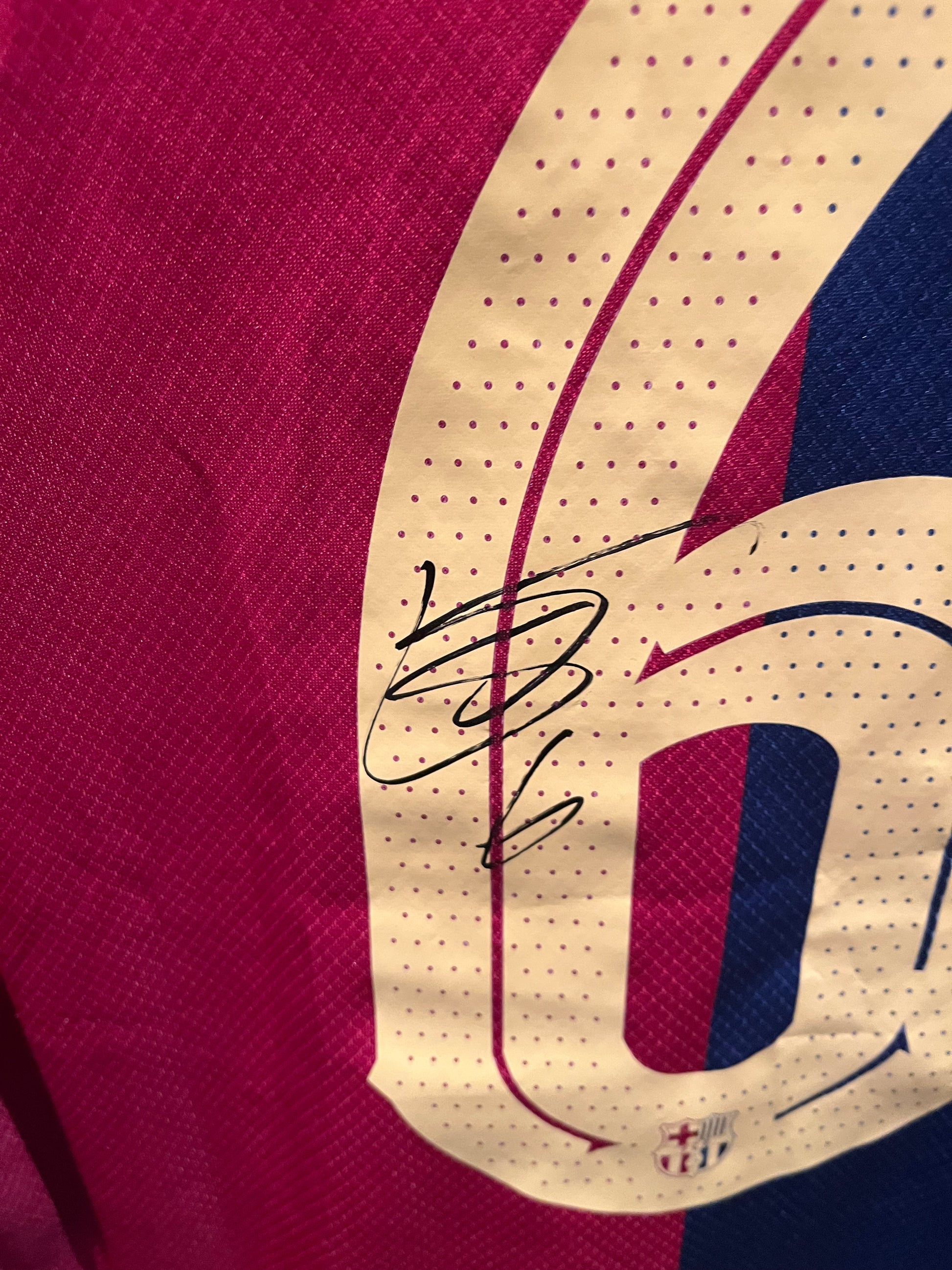 Selve drakten er nødvendigvis ikke original, men signaturen er 100% håndsignert av Gavi selv